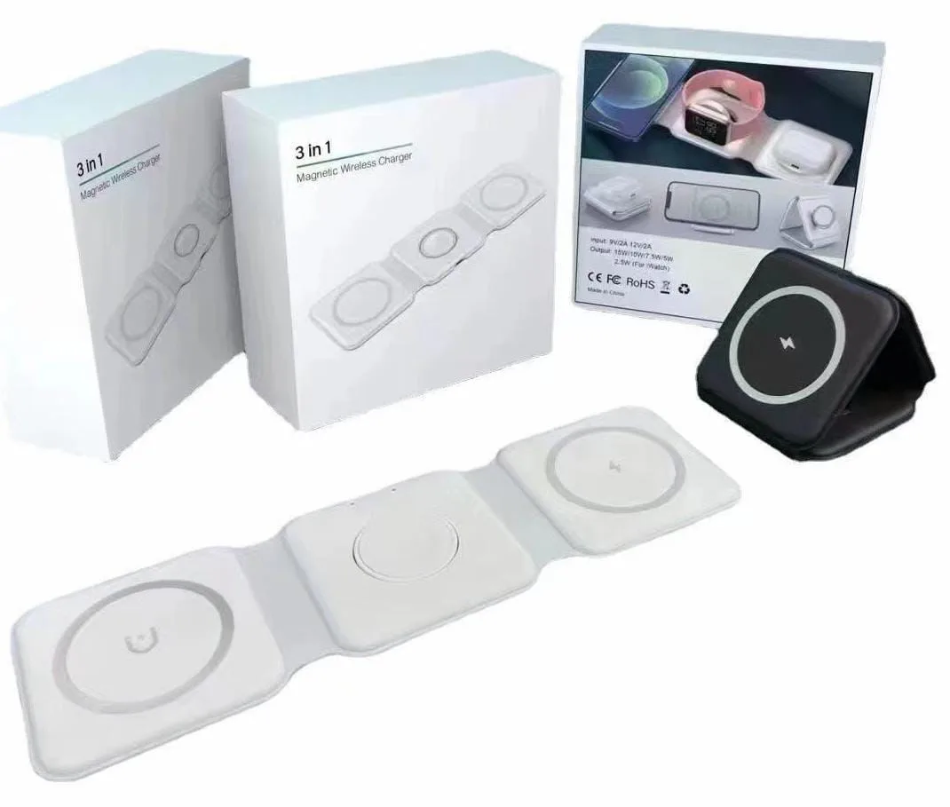 3-in-1 Foldable Magnetic Wireless Charger 15W Charging Station for iPhone Apple Watch and AirPods